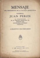 Mensaje del Presidente de la Nación Argentina Juan Perón al inaugurar el 85° periodo ordinario de sesiones del H.Congreso Nacional. Buenos Aires: Subsecretaría de Informaciones de la Presidencia de la Nación, 1951.