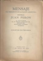 Mensaje del Presidente de la Nación Argentina Juan D.Perón al inaugurarse el 87 ° período ordinario de sesiones del H.Congreso Nacional. Buenos Aires: Subsecretaria de Informaciones Presidencia de la Nación, 1953.